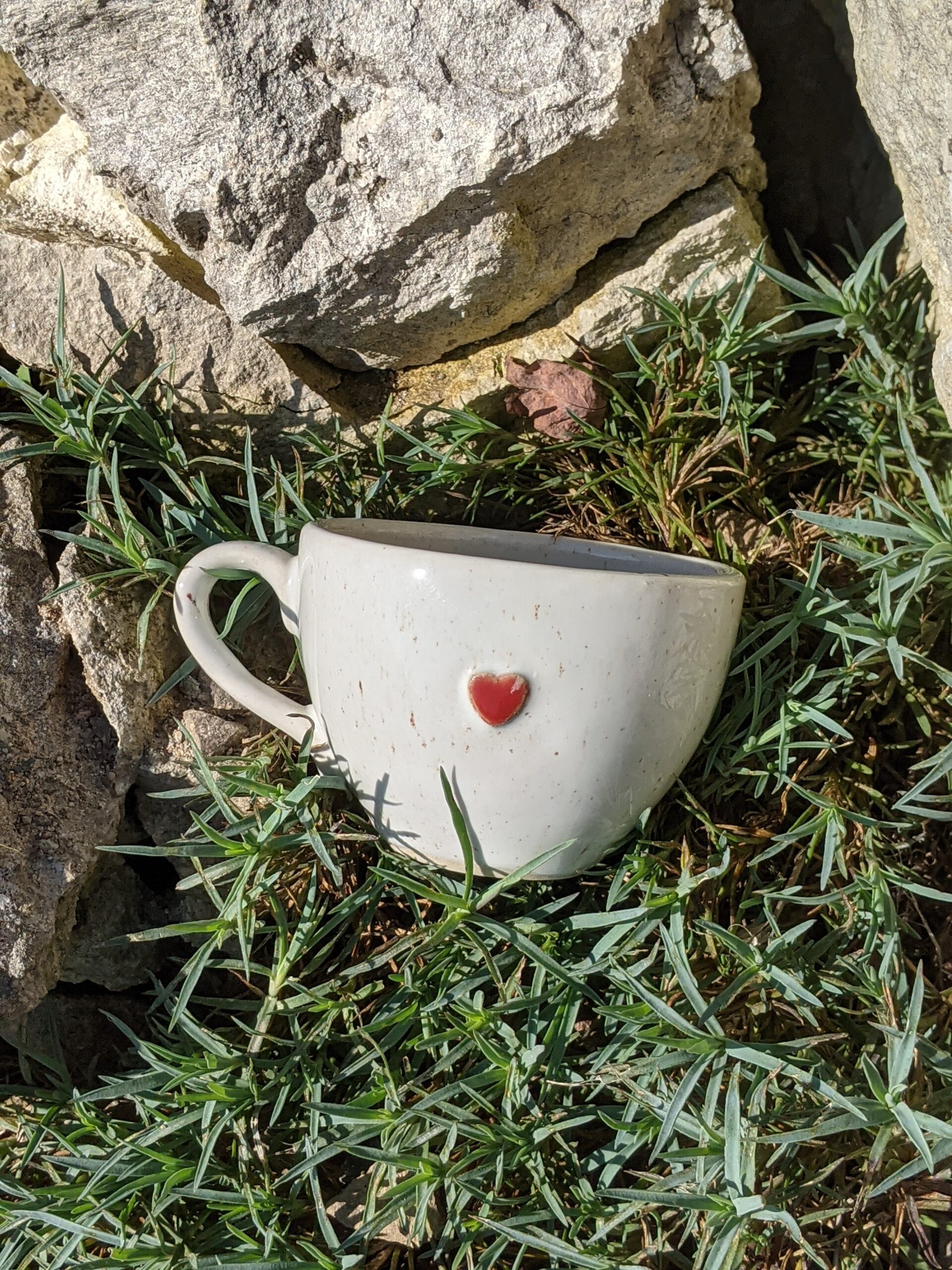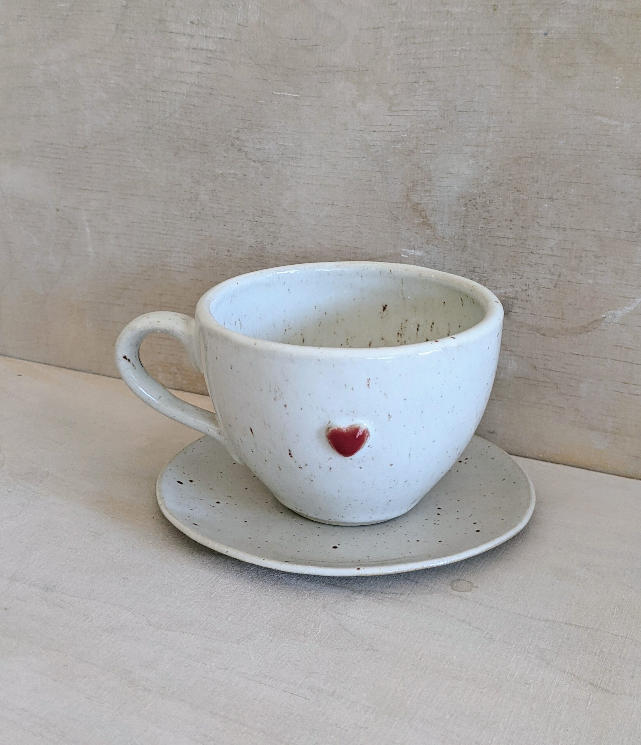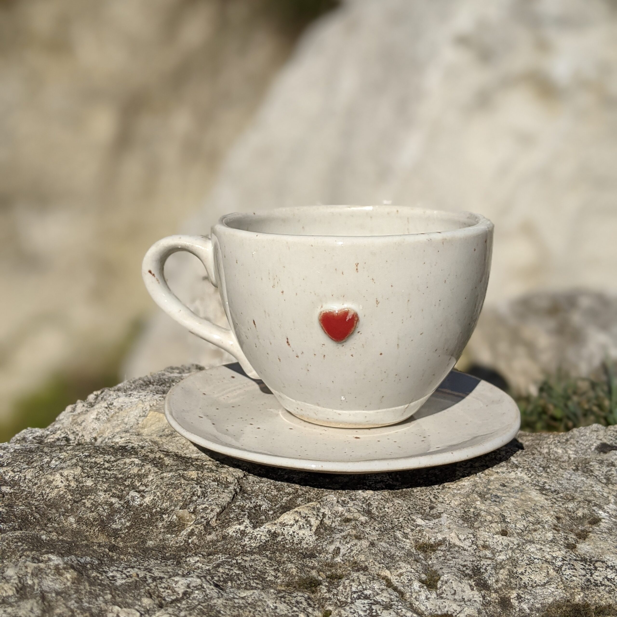 Ręcznie wykonana, szkliwiona filiżanka kamionkowa z serduszkiem.