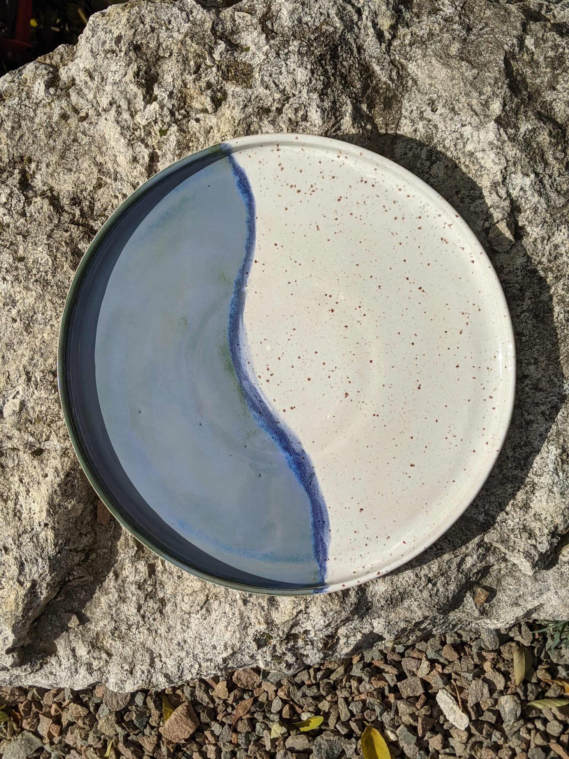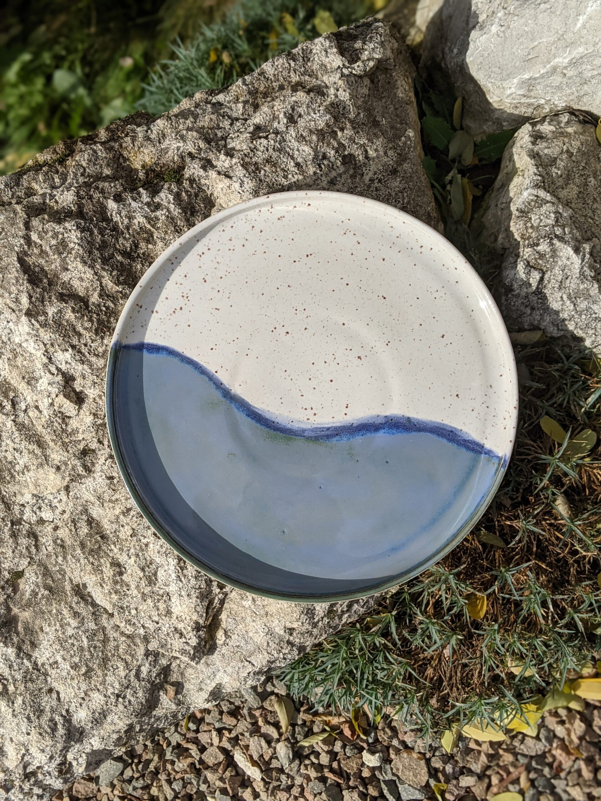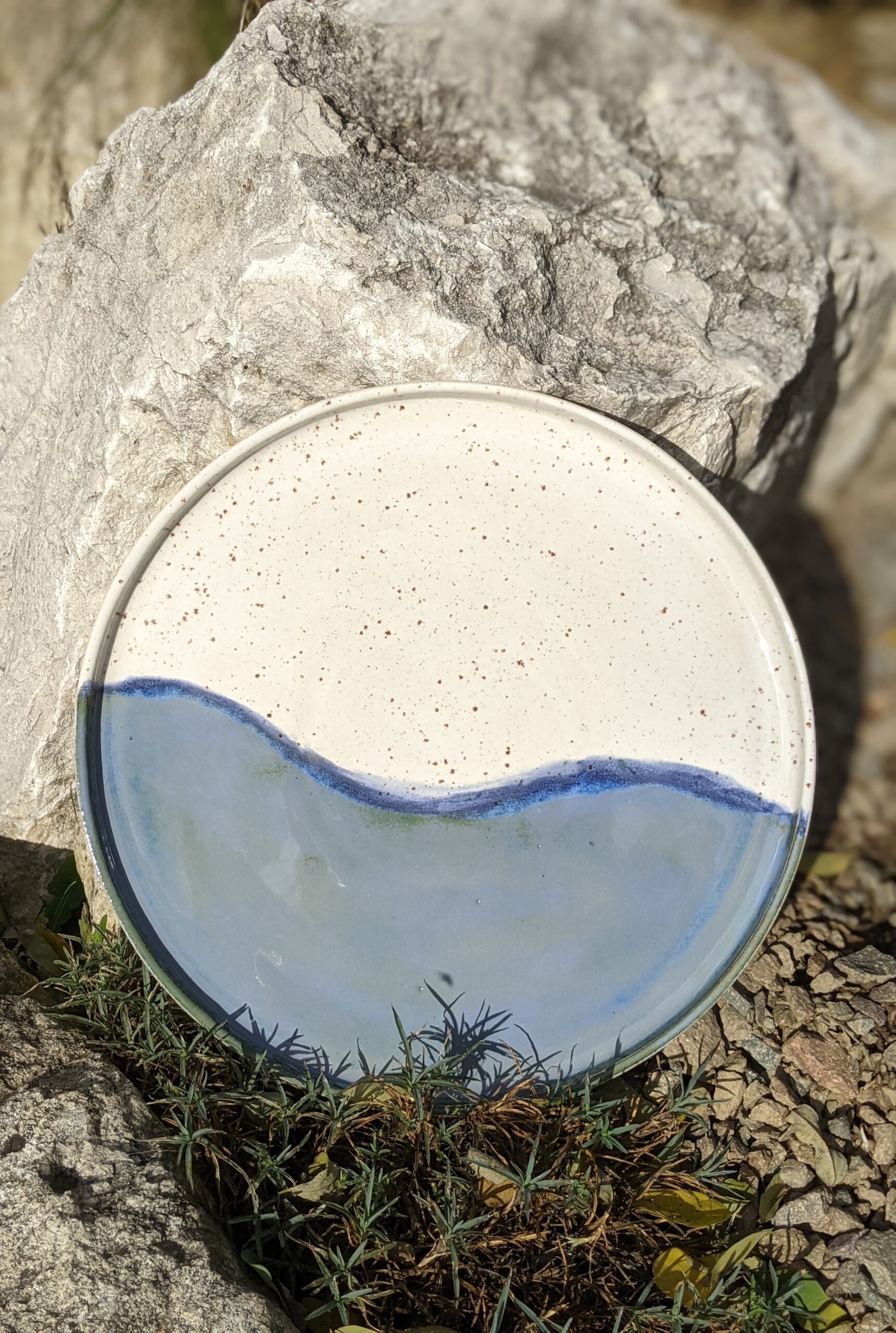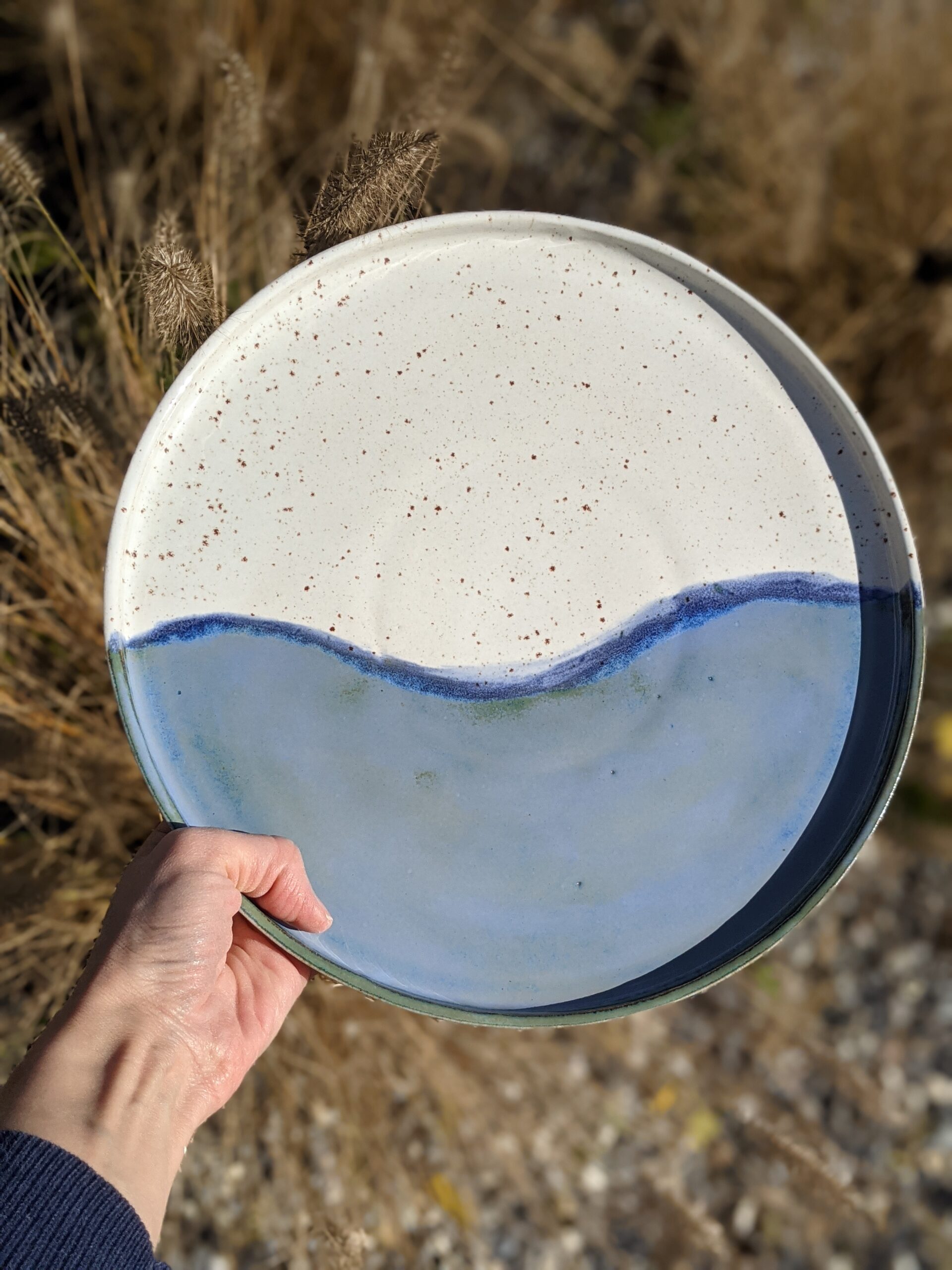 Ręcznie wykonana, szkliwiona patera kamionkowa.
